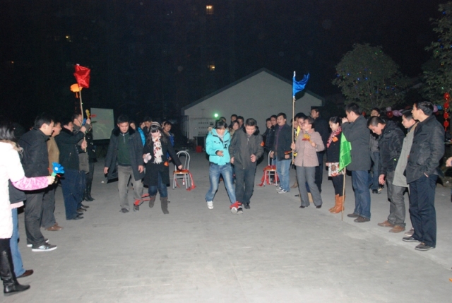 在中国水电七局成都工程有限责任公司院内,彩灯闪烁,热闹非凡,座无虚席。