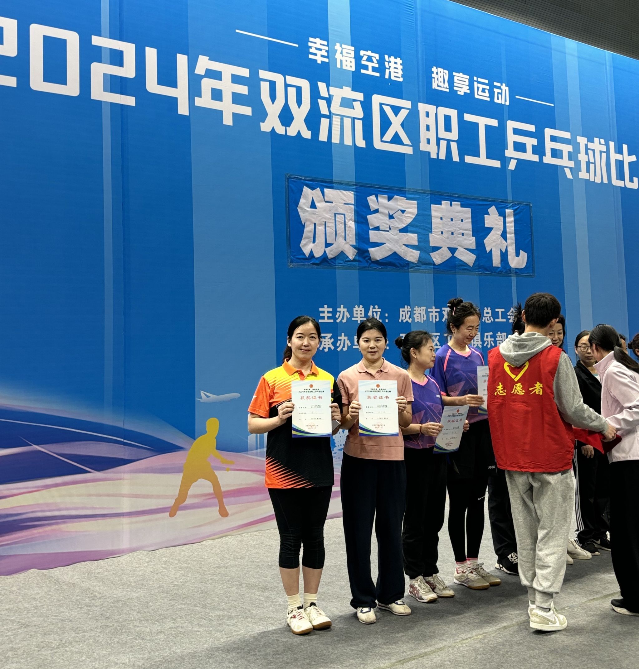 我校教职工周洪艳、蒋艳在双流区总工会举办的2024年职工乒乓球比赛中勇夺女双第四名。